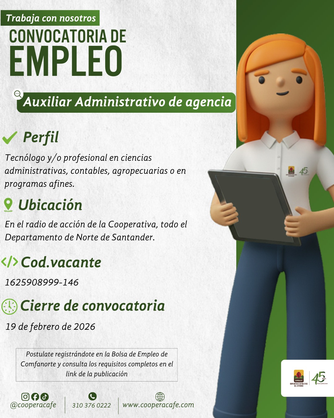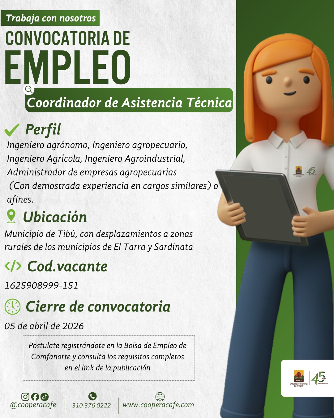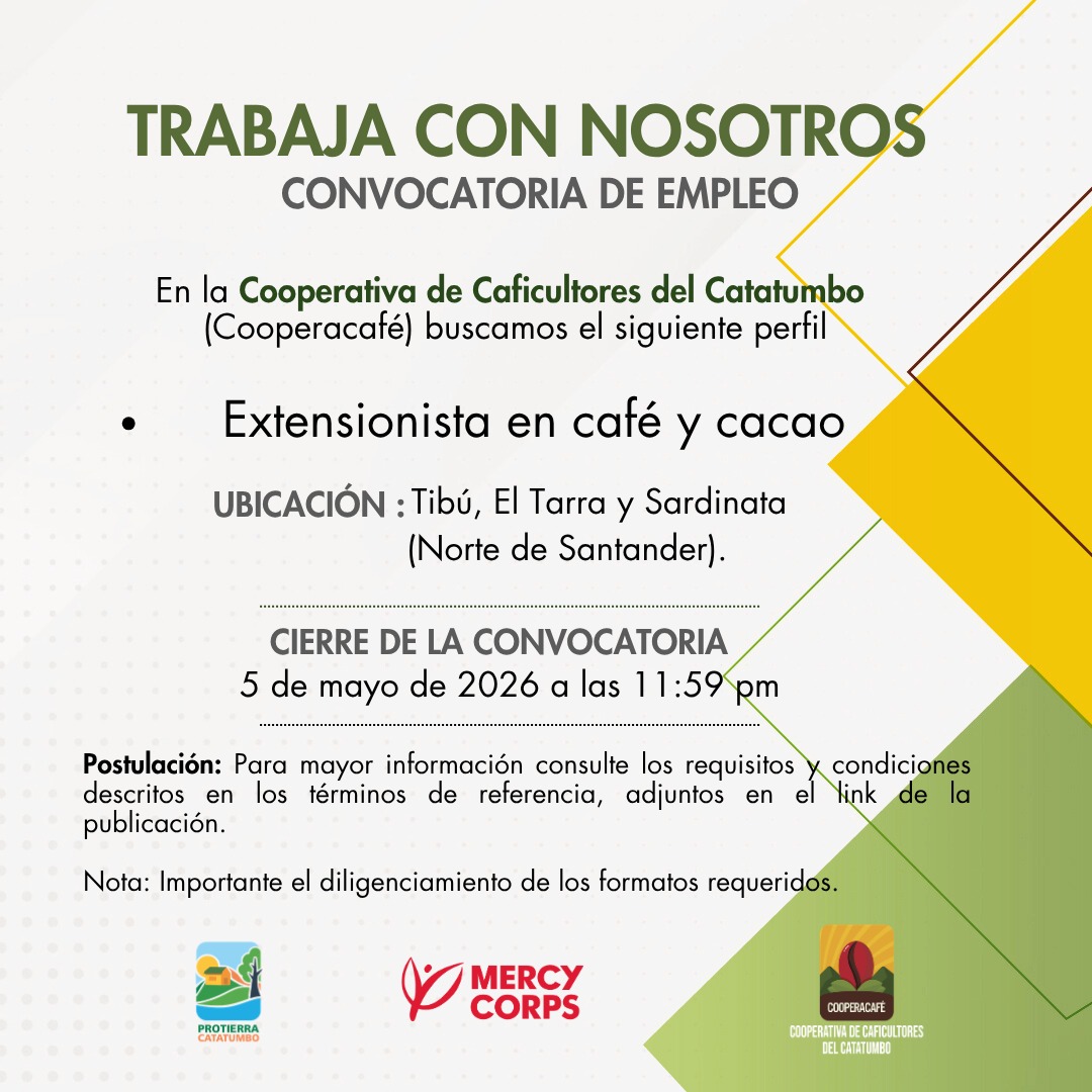 En la Cooperativa de Caficultores del Catatumbo (Cooperacafé) estamos en busca de nuevos talentos y tu podrías ser uno de ellos.