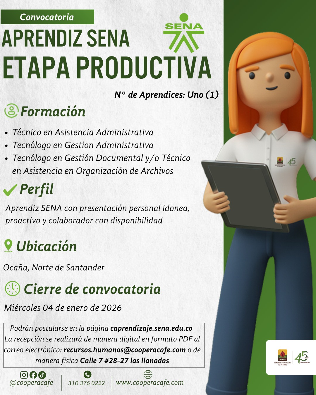 En la Cooperativa de Caficultores del Catatumbo (Cooperacafé) estamos en busca de nuevos talentos y tu podrías ser uno de ellos.